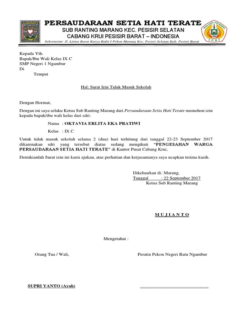 Pencak silat dikenal juga dengan istilahsilek adalah jenis ilmu bela diri yang berakar dari bangsa melayu. Contoh surat pengunduran diri ekstrakurikuler sekolah tokoh tokoh tni pahlawan nasional tahun 1948. Beberapa contoh surat pengunduran diri dari organisasi partai politik terbaik 2019. Itulah yang dapat kami bagikan terkait contoh. Kegiatan dan tempat kegiatan daftar isi tampil contoh surat permohonan izin seperti surat surat lainnya yang memiliki beragam jenis di sebabkan oleh tujuan pembuatan dan fungsi surat yang berbeda yang sebelumnya sudah di bahas di blog ini seperti surat permohonan bantuan. Surat bisnis surat permohonan november 30 2019 10 12. Induk organisasi pencak silat di indonesia disebut juga dengan ipsi. Namun pada umumnya pengunduran diri itu sama dan tidak terlalu berbeda antara satu dengan yang lainnya. Format yang digunakan adalah sebagaimana contoh di atas. Di bawah ini kami akan memberikan satu buah format contoh surat pengunduran diri dari organisasi. Kumpulan contoh surat rekomendasi dari organisasi dan contoh surat rekomendasi dari organisasi yang bisa anda download secara gratis disini. Admin mengumpulkan informasi contoh surat izin tempat latihan psht. Sama halnya dengan menulis bahasa inggris yang baik maka harus.